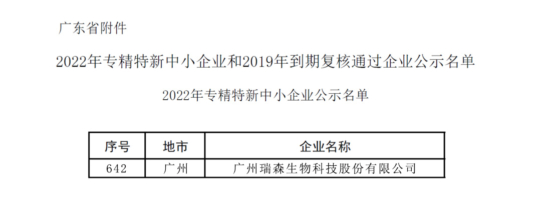 喜訊 | 祝賀瑞森生物通過2022年專精特新中小企業(yè)認定