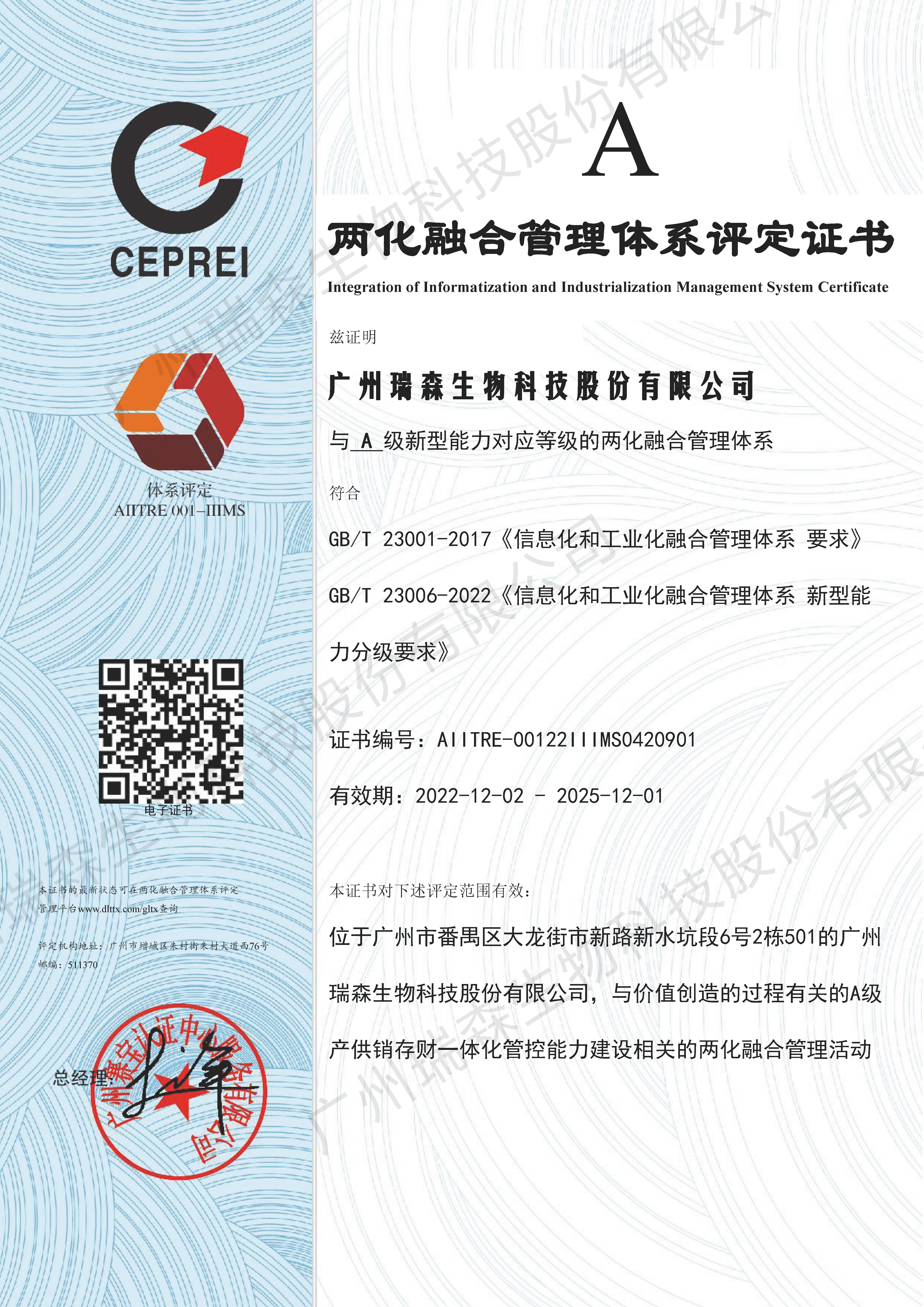 喜訊 | 瑞森生物喜獲A級(jí)“兩化融合”管理體系認(rèn)證