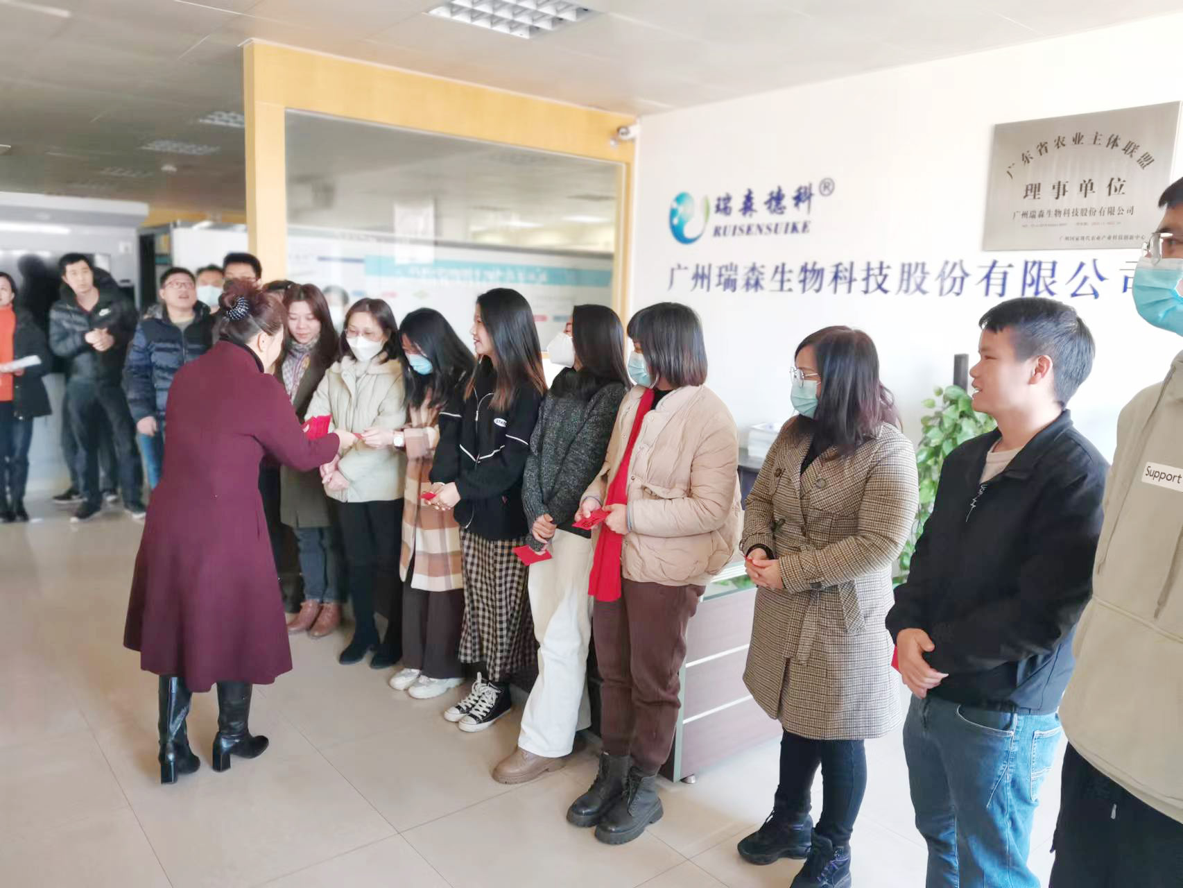 2023年1月28日(農歷正月初七),瑞森集團正式開工,總經理張宣代表公司向員工派發(fā)新年開工紅包,祝愿公司新的一年業(yè)務蒸蒸日上!生意興?。∝斣礉L滾!大吉大利!錢“兔”無量?。。?/span>