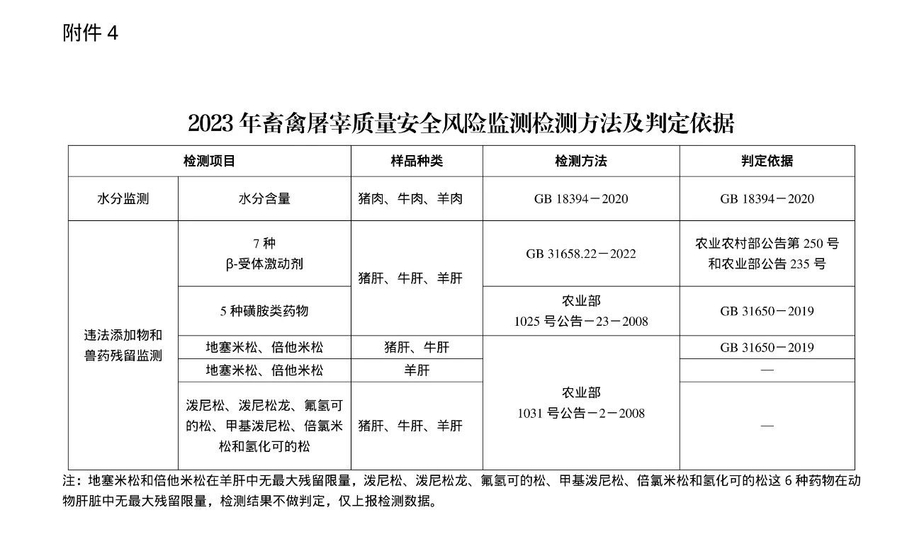 4. 2023年畜禽屠宰質(zhì)量安全風(fēng)險(xiǎn)監(jiān)測(cè)檢測(cè)方法及判定依據(jù)