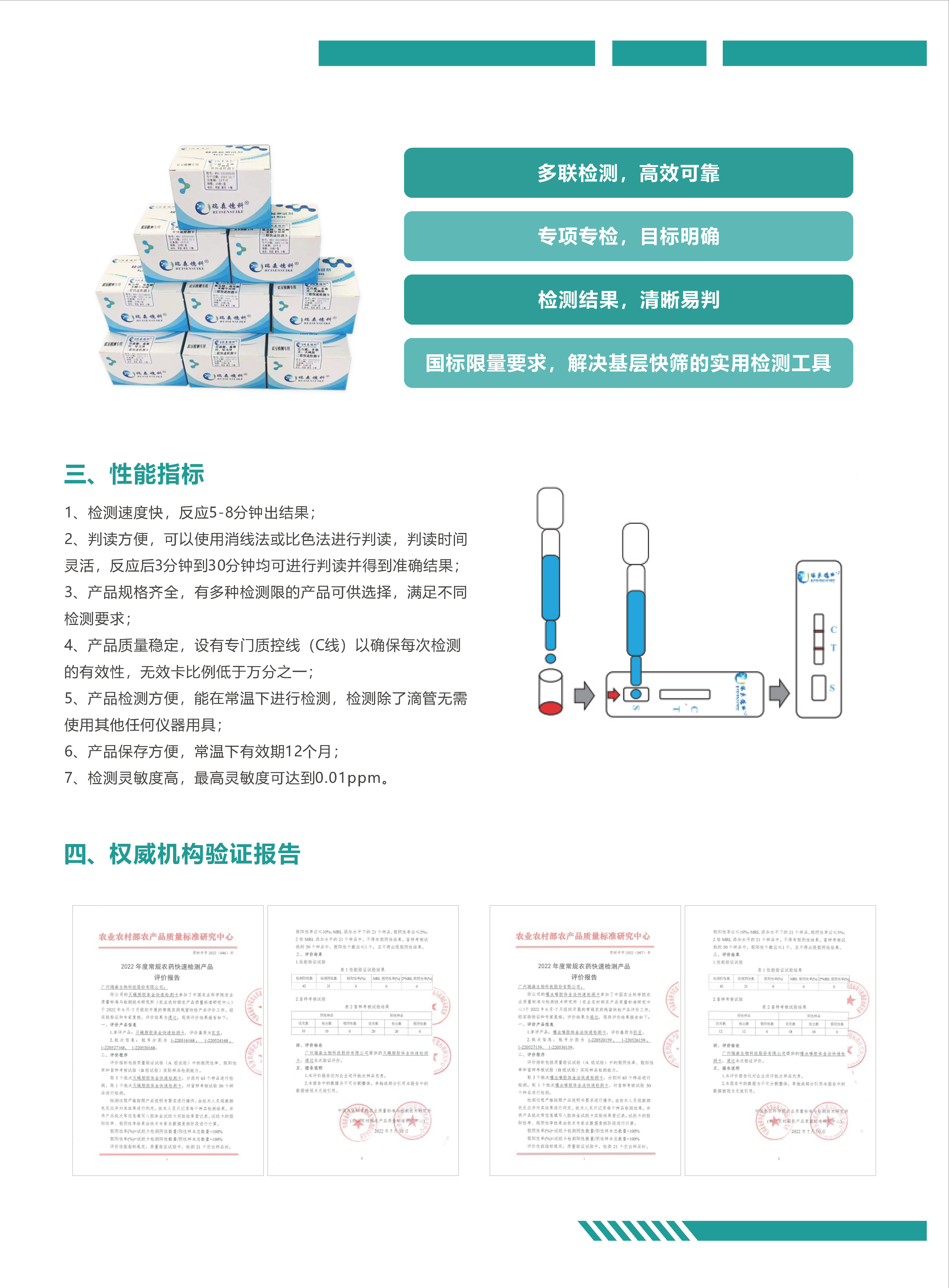 瑞森生物作為廣東省重點農業(yè)龍頭企業(yè),一直致力于食品安全檢測行業(yè),至今已深耕十六年之久。公司在食品安全檢測領域發(fā)揮了技術優(yōu)勢,憑借精湛的技術為客戶提供優(yōu)質、穩(wěn)定、可靠的產品,為國人食品安全保駕護航,也為推動食品檢測行業(yè)高質量發(fā)展貢獻了企業(yè)力量。公司屬國家高新技術企業(yè),廣東省重點農業(yè)龍頭企業(yè),廣州市農業(yè)龍頭企業(yè),全國重點信用單位,廣東省守合同重信用企業(yè),中國生物科技行業(yè)自主創(chuàng)新品牌企業(yè),目前擁有國家專利29項,國家軟件著作權18項,高新技術產品15項,技術項目研發(fā)5項。公司現擁有快速檢測試劑和設備上百種,核心產品通過農業(yè)農村部驗證,可為監(jiān)管部門、農牧企業(yè)、經銷商提供專業(yè)、全面的檢測產品和服務。