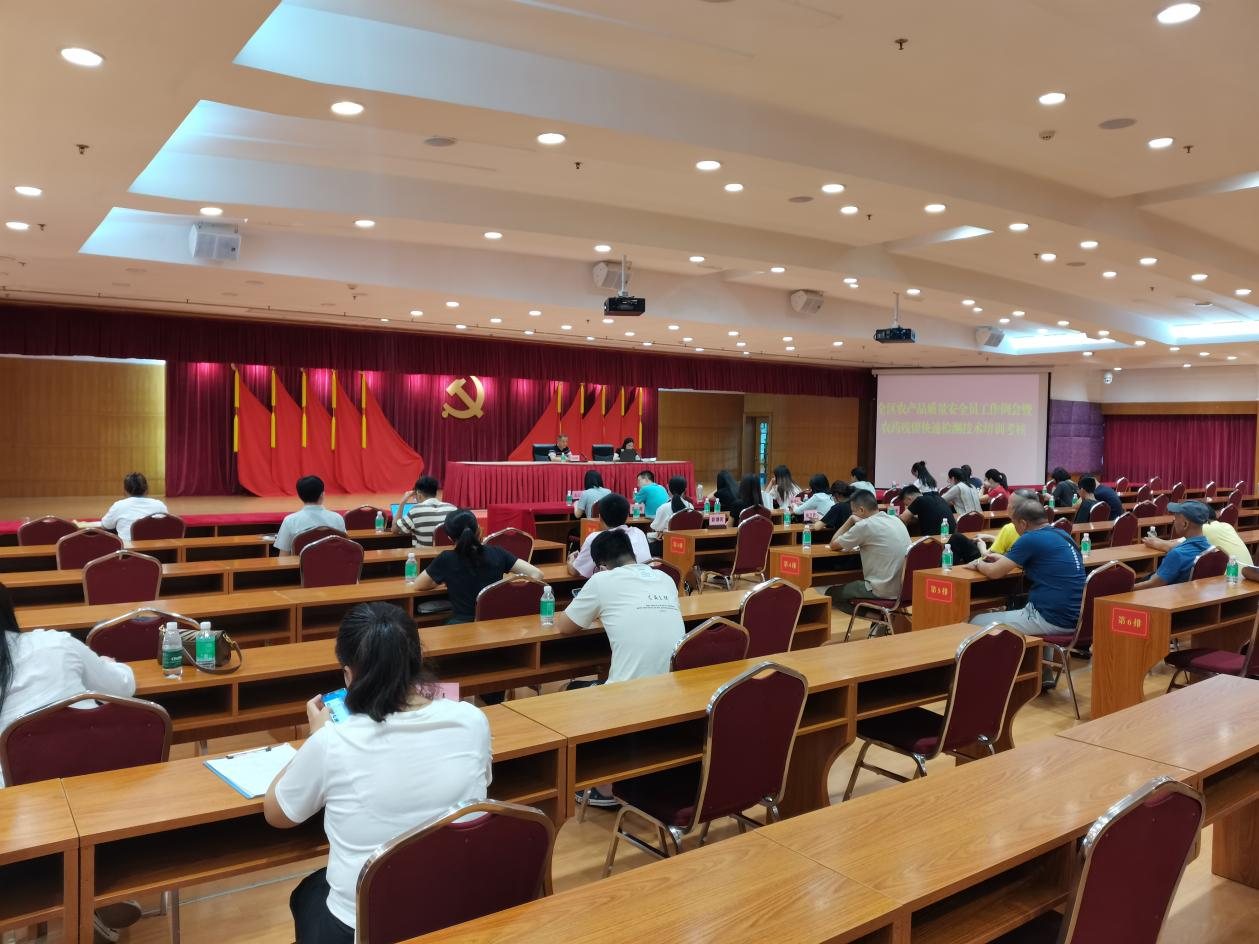 為強(qiáng)化廣州市農(nóng)產(chǎn)品質(zhì)量安全監(jiān)測體系建設(shè),提升各級(jí)農(nóng)產(chǎn)品質(zhì)量安全監(jiān)測機(jī)構(gòu)的檢測能力,切實(shí)保障產(chǎn)地農(nóng)產(chǎn)品質(zhì)量安全。2023年7月28日,”天河區(qū)農(nóng)產(chǎn)品質(zhì)量安全員工作例會(huì)暨農(nóng)藥殘留快速檢測技術(shù)培訓(xùn)考核會(huì)議“在天河區(qū)人民政府機(jī)關(guān)大院2號(hào)樓會(huì)議室召開。天河區(qū)農(nóng)業(yè)農(nóng)村局分管領(lǐng)導(dǎo)、全區(qū)各街道辦全體專職農(nóng)產(chǎn)品質(zhì)量安全員及農(nóng)業(yè)線口主要工作人員、全區(qū)各經(jīng)濟(jì)聯(lián)社農(nóng)業(yè)線口主要工作人員參與了本次培訓(xùn)會(huì)議廣州瑞森生物科技股份有限公司技術(shù)培訓(xùn)同事受邀為本次培訓(xùn)班所有參訓(xùn)人員就食用農(nóng)產(chǎn)品快檢技術(shù)”課題做了培訓(xùn),并取得良好效果。