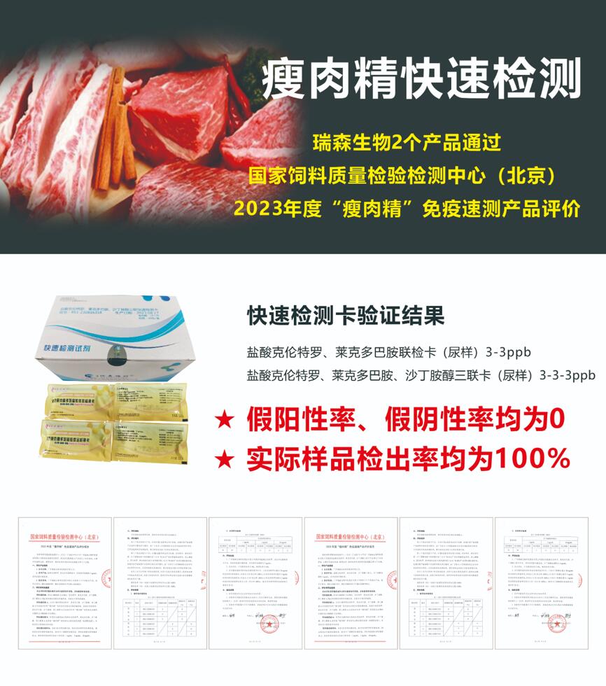 喜訊 | 瑞森生物2款產品通過2023年“瘦肉精”免疫速測產品評價!